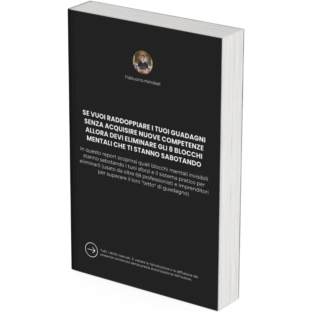 In questo report scoprirai quali blocchi mentali invisibili stanno sabotando i tuoi sforzi e il sistema pratico per eliminarli (usato da oltre 68 professionisti e imprenditori per superare il loro "tetto" di guadagno)